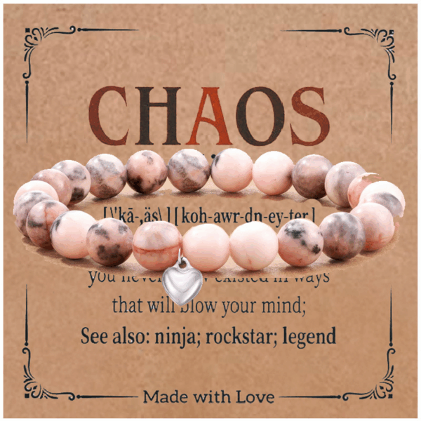 Item name: 8mm Pink Zebra Stone Bead Bracelet With Heart Festival Gift 250037-2
