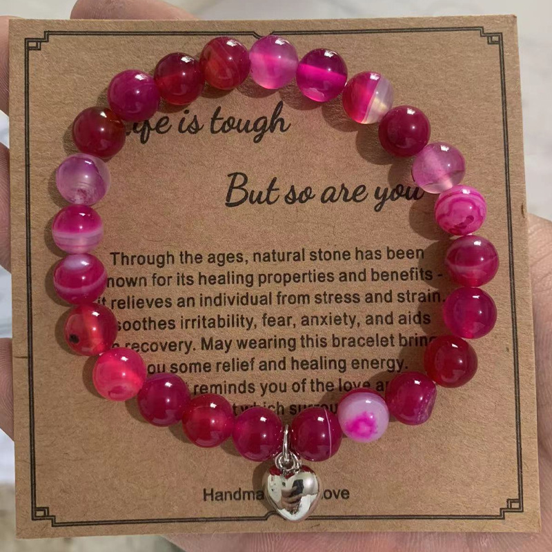 Item name: 8mm Rose-red striped agate Bead Bracelet 250037-23